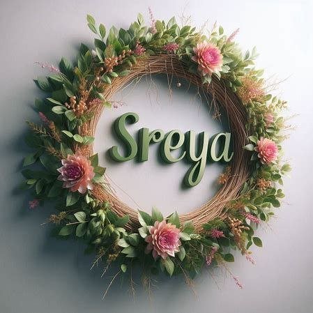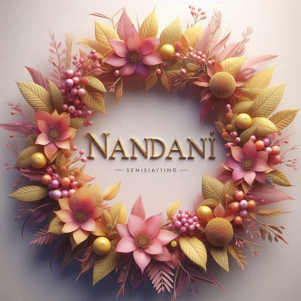 a close up of a wreath with Pink and yellow leaves with Yellow smoke, and the word Riya written, satisfying render, high quality scan, realistic 3d style, made of flowers  and  fruits and leaves, clean and simple design, profile picture, amazing composition,. 8k realistic