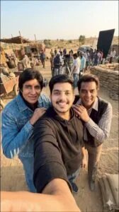 Create a realistic, high-fidelity (8K) image based on the attached reference photo. Retain the exact facial features, skin color, bone structure, hairstyle and expression of the attached person without any changes or swapping of the face. The person attached is standing on (set/location) and taking a selfie with (celebrity). Crew members are adjusting interior lighting and instruments, with cables and gear visible. The director and manager are standing in the back, discussing the next take. copy to clipboard