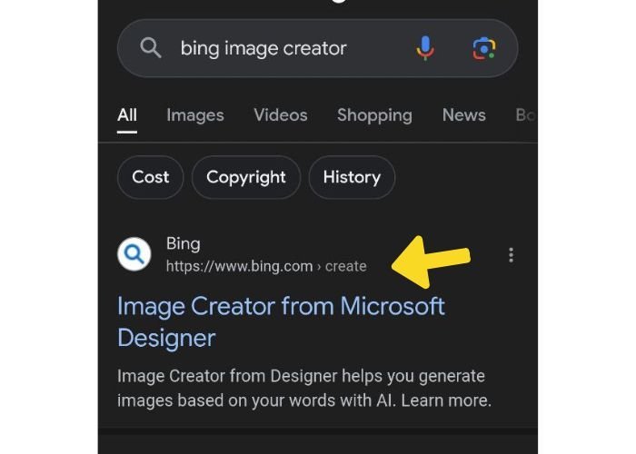 1. Go to the Bing Image Creator website.