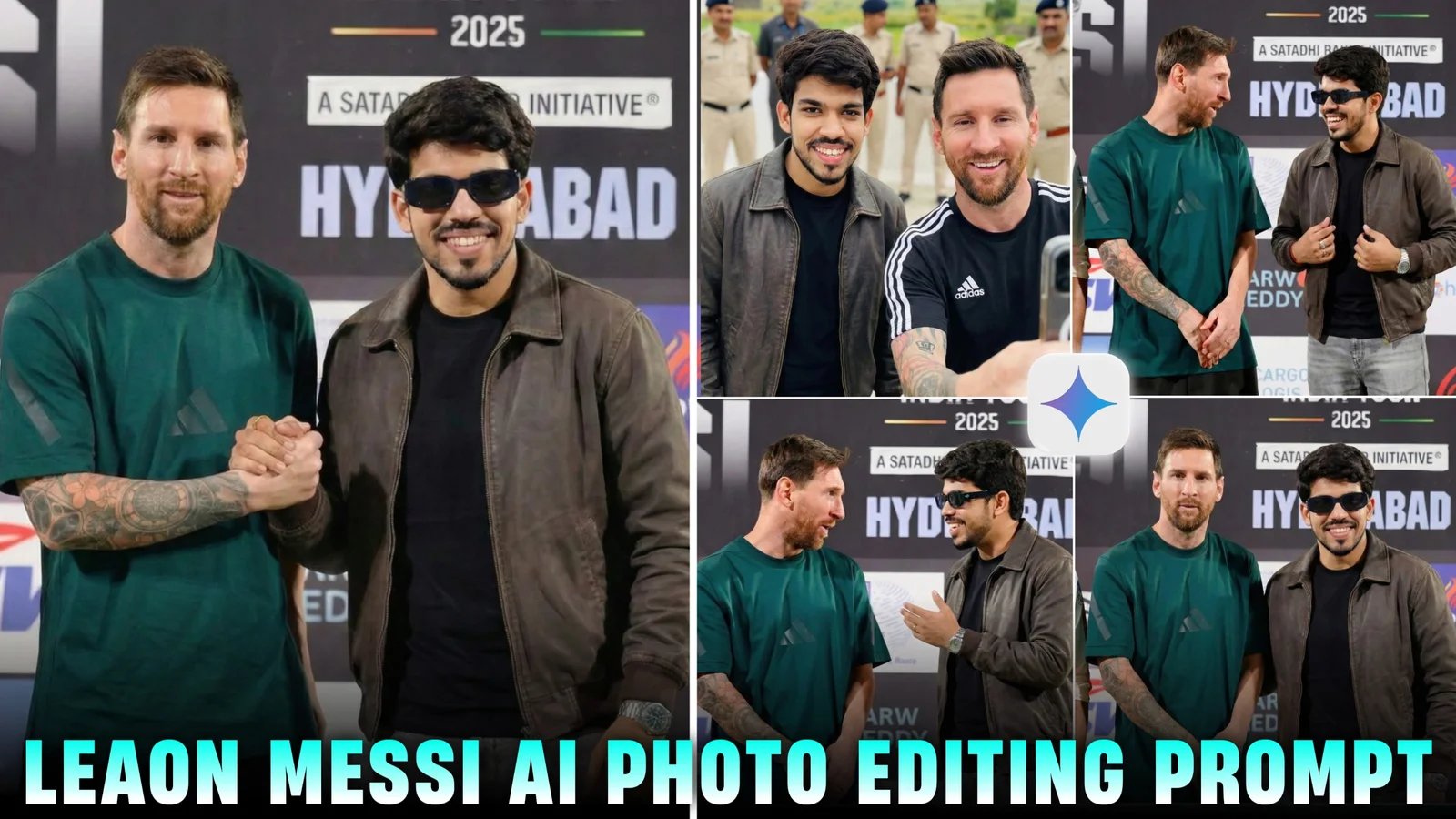 So Friends In this article, I am sharing fresh and powerful Gemini AI prompts that help you create realistic images where you are taking a selfie with football legend Lionel Messi during the Lionel Messi GOAT India Tour. When Messi arrived in Hyderabad, thousands of fans gathered at Rajiv Gandhi International Stadium just to catch a glimpse of him. Sadly, many people couldn’t see him closely or take a selfie or autograph. If you’re one of those fans, don’t worry. With the help of these AI photo editing prompts, you can create a realistic selfie image with Lionel Messi that looks almost real. These prompts are simple to use and give high-quality results So you guys should read this article carefully, then I will tell you all these steps below, only then you will understand.