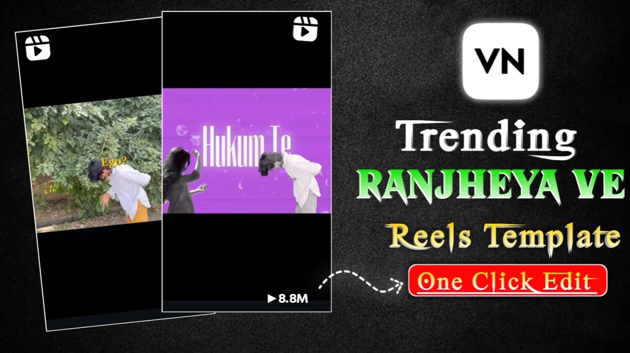 Tere Hukum Te Jaan Reels Editing Template | Ranjheya Ve Song Vn Template Code – Nowadays, a reel is going viral very fast on Instagram, which everyone is making and this heart looks very good and there is also an emotional connection in it, which people like very much after seeing it and people are making such videos and uploading them on their Insta, YouTube Shorts, TikTok, on which their minions are getting views and in the reels which are going viral, there is a song Tere Hukum Te Jaan Nisaar Kar Saan, this song is going viral very fast and its lyrics are also being written and there is also a girl in front, who looks very attractive, so you can make this video using a template, how to make it, you will be told in this article in a very simple way, using a template, within just 1 to 2 minutes, you will be able to make such a video in one click, so only if you read this article carefully, you will understand it.